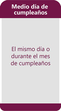 *Si la fecha de tu cumpleaños coincide con vacaciones, incapacidades o licencias de ley, podrás disfrutar del medio día libre dentro de los siguientes 30 días calendario.